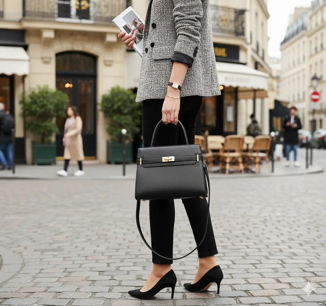 Le Sac Élégance Royale capture l’essence du raffinement à la française. Sa structure noble, ses lignes architecturales et ses finitions dorées en font une pièce d’une élégance absolue. Conçu pour celles qui apprécient la distinction dans chaque détail, il s’impose comme l’allié parfait du style intemporel.