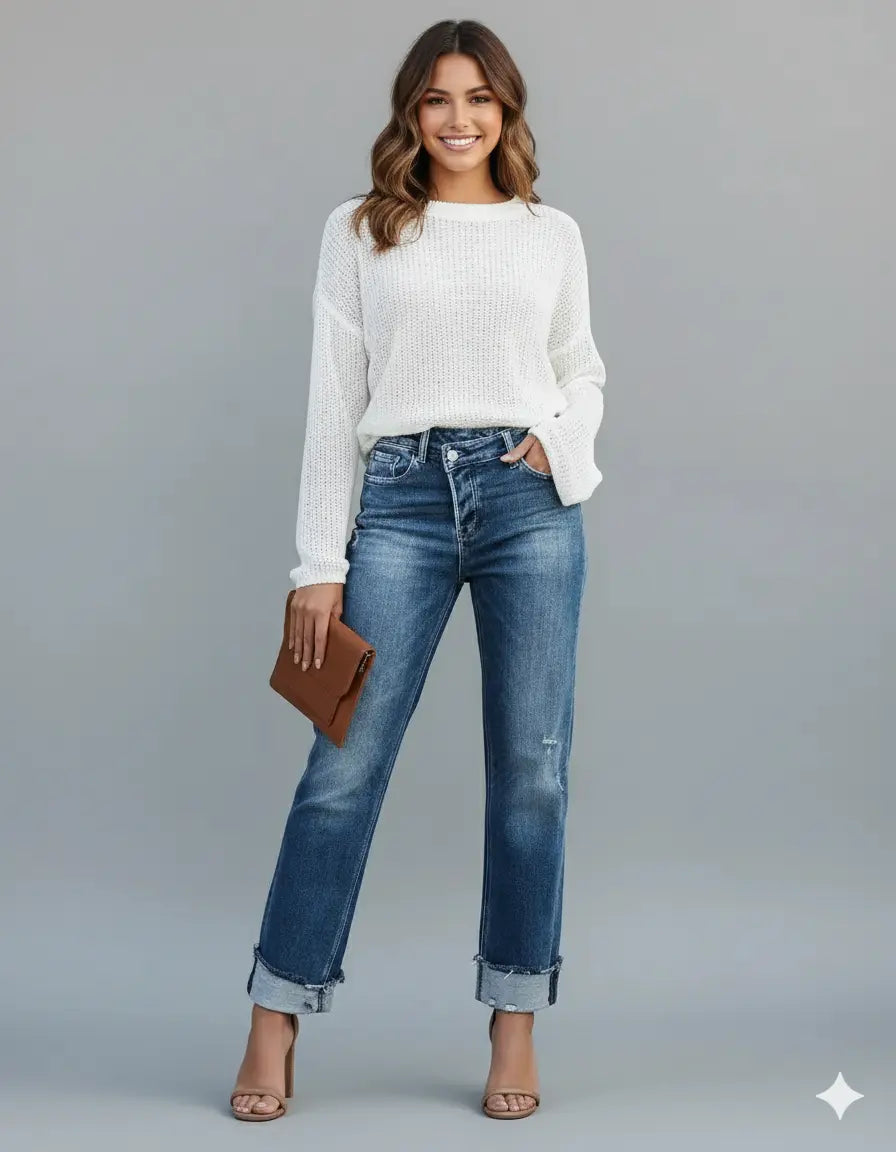 Un denim essentiel qui associe la coupe large tendance à la taille haute flatteuse. Parfait pour créer des looks urbains à la fois décontractés et sophistiqués.