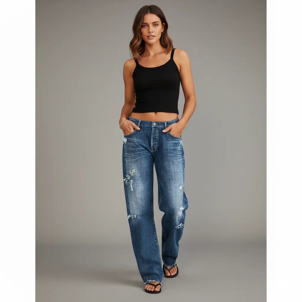 Effet usé et déchirures stylisées pour un look vintage