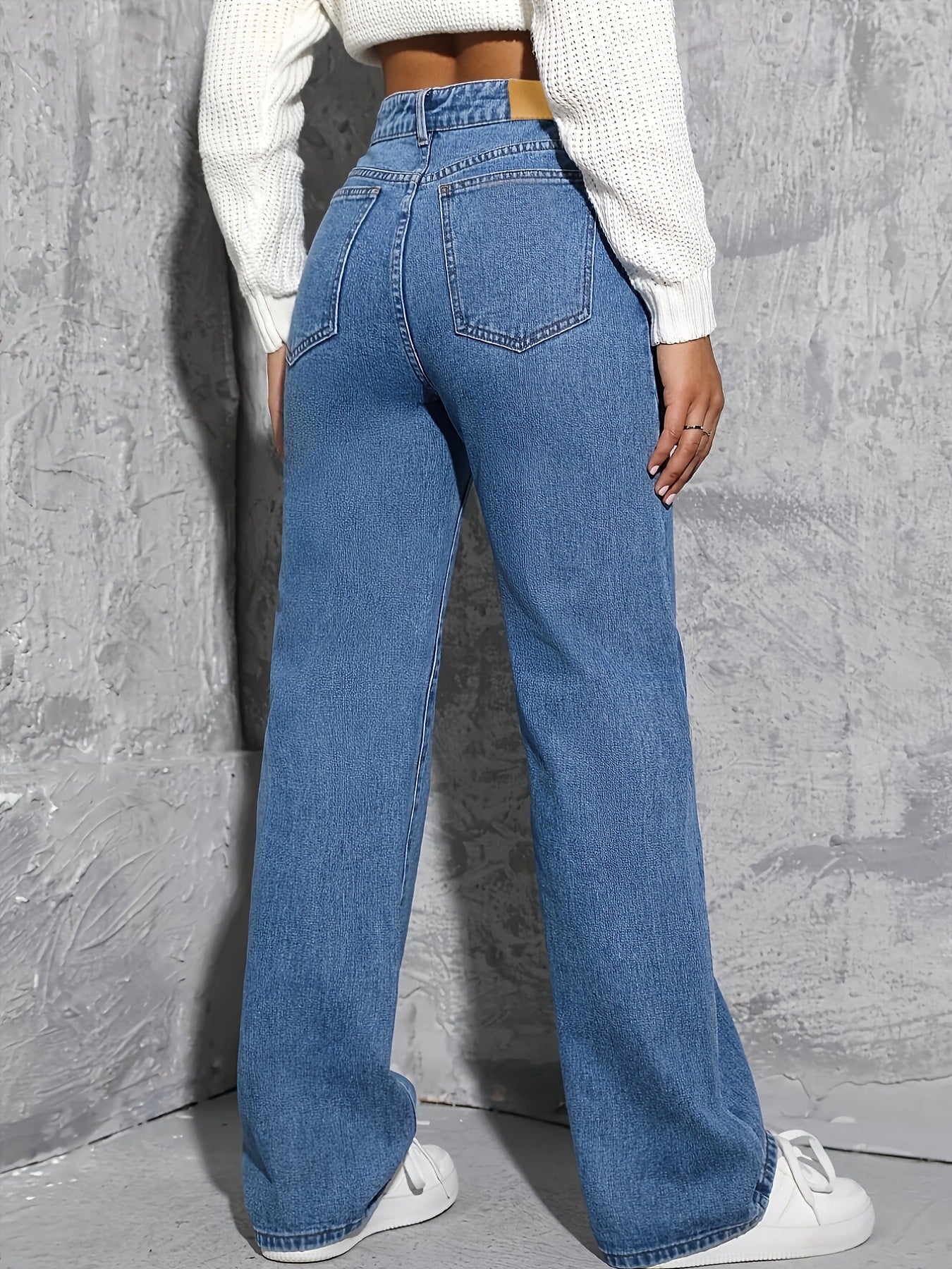 Denim premium et résistantTaille haute qui sublime la silhouetteEffet délavé tendance et chicOurlet replié pour une finition raffinée