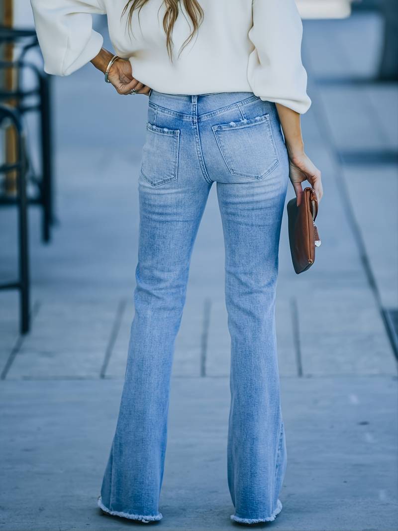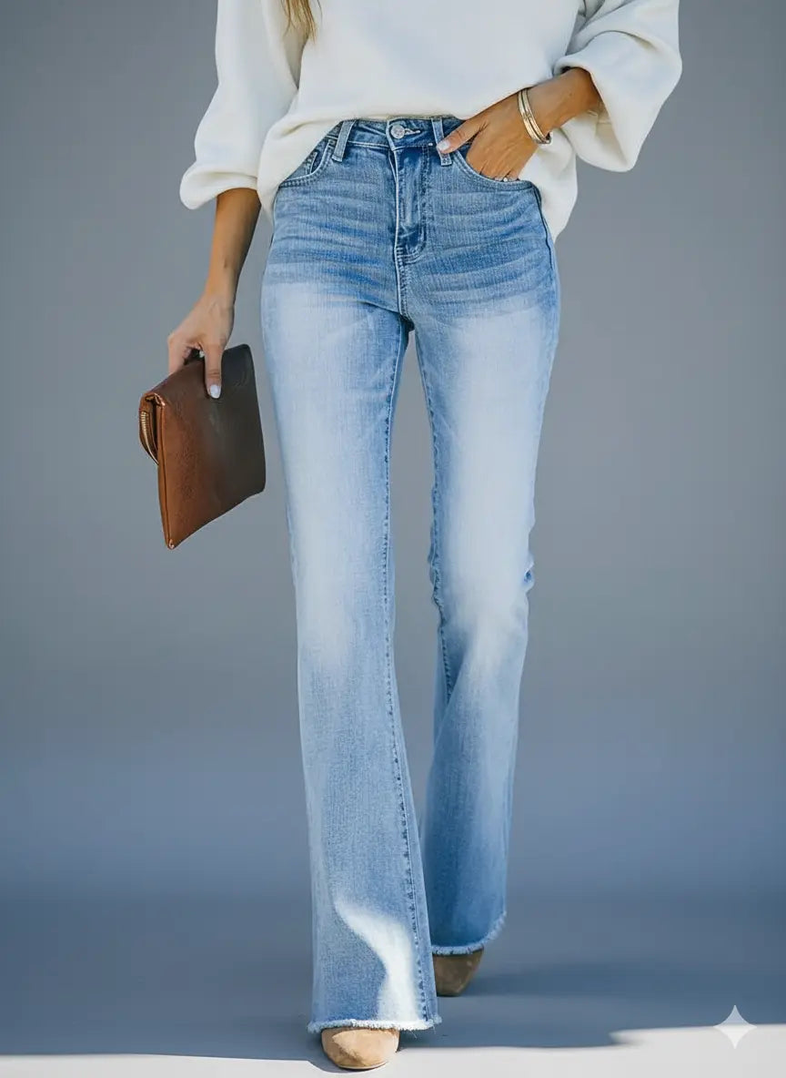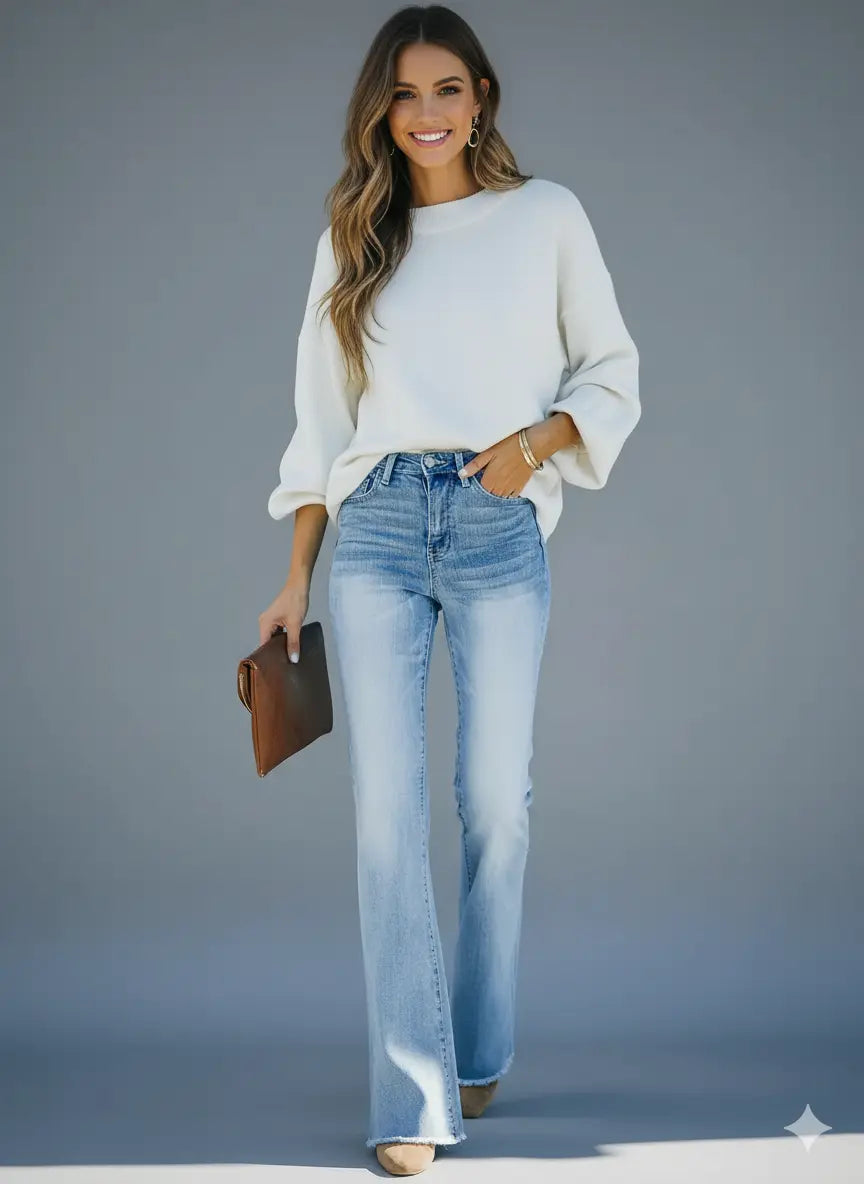 Un denim inspiré des années 70, revisité pour la femme moderne. Sa coupe évasée et sa teinte délavée allongent la silhouette tout en offrant un confort quotidien.