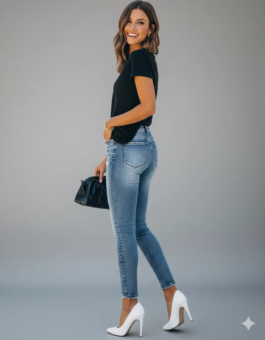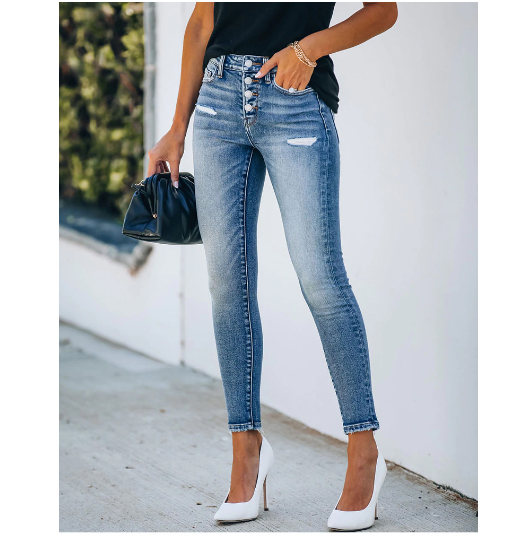 Denim premium et résistantTaille haute qui sublime la silhouetteEffet délavé tendance et chicOurlet replié pour une finition raffinée