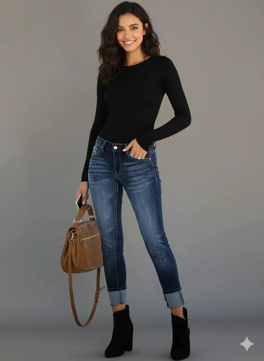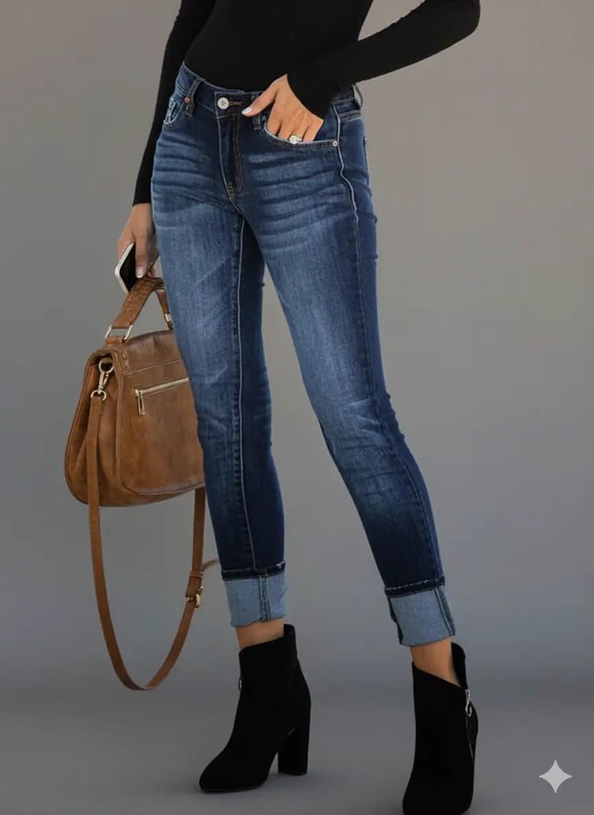 Un jean incontournable qui combine la coupe slim moderne à une finition sophistiquée grâce à son revers apparent. Idéal pour un look chic et décontracté.