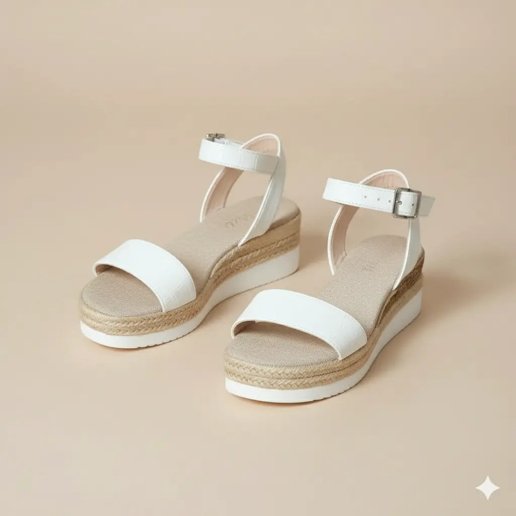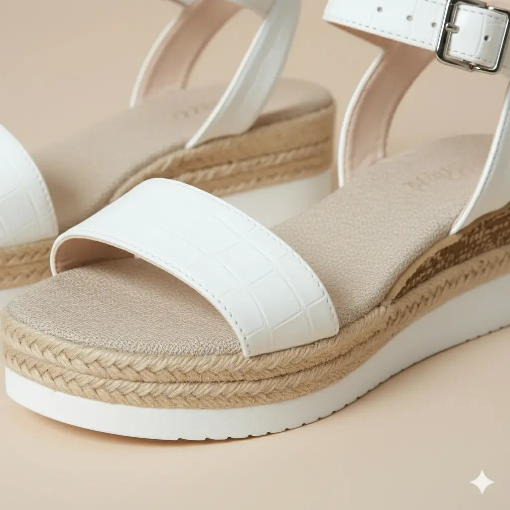 Les Sandales à Plateforme associent confort et raffinement dans un design intemporel. Leur semelle tressée esprit espadrille et leurs brides blanches apportent une touche chic et estivale à chaque pas.